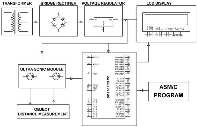 在無法到達(dá)的區(qū)域進(jìn)行距離測量是超聲波傳感器的典型應(yīng)用。該電路由超聲模塊,LCD顯示屏和微控制器組成。超聲模塊與微控制器接口,并且該超聲換能器由發(fā)射器和接收器組成。