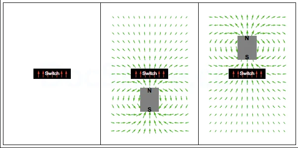 這些開(kāi)關(guān)的操作通常取決于磁場(chǎng)強(qiáng)度,磁場(chǎng)方向和設(shè)備公差。在大多數(shù)單極開(kāi)關(guān)中,磁場(chǎng)需要垂直指向封裝的表面。