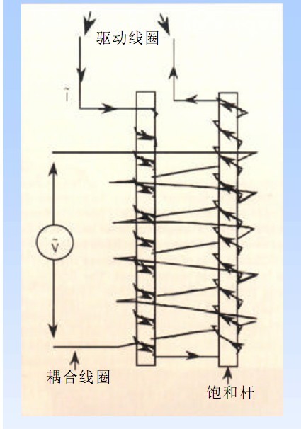 磁通門(圖 2),同樣基于法拉第定律,通常是用兩個(gè)鐵磁材料制成的桿,但也可以是用一次或二次繞組繞成的環(huán)或圈。這兩個(gè)桿用一次繞組纏繞,以相反方向產(chǎn)生驅(qū)動(dòng)磁場。頻率在驅(qū)f 的交流電在一次繞組中流動(dòng)動(dòng),在磁場的作用下兩個(gè)桿的磁化作用處于相反方面。二次繞組測量。在未施加外部磁場時(shí),假定兩個(gè)桿和一次線圈是相同的,則在二次線圈里的凈磁通量為零。這樣在此線圈中就不會(huì)有信號(hào)產(chǎn)生。當(dāng)沿著桿的軸線方向施加一個(gè)外部磁場時(shí),其中的一個(gè)桿將先于另一個(gè)桿磁性飽和。磁通門的輸出是驅(qū)動(dòng)頻率f的第二諧波。施加一個(gè)小磁場時(shí),第二諧波的波幅與施加的磁場成正比。