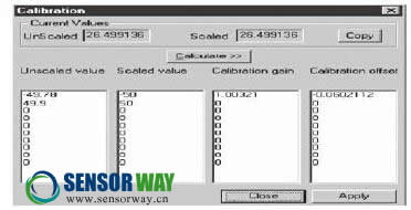 現(xiàn)在,按下“Calculate(計算)”按鈕,軟件開始計算該傳感器輸入通道標定增益和零偏以達到期望的Scaled值。按下“Apply(應(yīng)用)”按鈕,這些值將被保存到計算機軟件系統(tǒng)中。