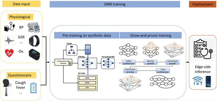 這些數(shù)據(jù)是從意大利北部一家醫(yī)院的健康、無癥狀和有癥狀的個體中收集的。醫(yī)生在那家醫(yī)院給它們貼上標(biāo)簽,以實現(xiàn)有監(jiān)督的機器學(xué)習(xí)。然后使用基于我們的增長和修剪神經(jīng)網(wǎng)絡(luò)合成程序的數(shù)據(jù)訓(xùn)練神經(jīng)網(wǎng)絡(luò)。