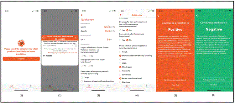 CovidDeep 應(yīng)用程序用戶體驗的屏幕截圖。
