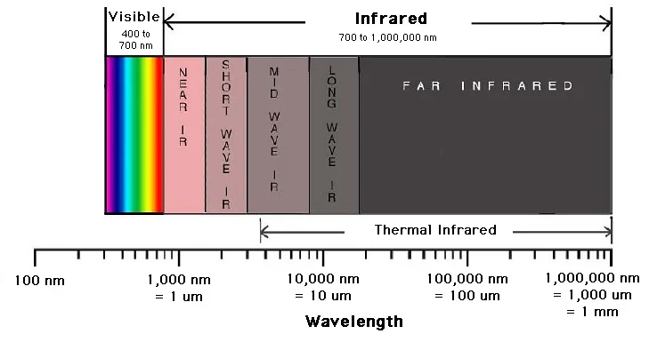 圖 1.可見(jiàn)和紅外光譜。圖片由 加州大學(xué)伯克利分校的Digital Earth Watch提供