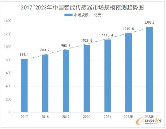 從市場運行情況來看,2022年我國智能傳感器市場規(guī)模快速增長。據(jù)中國信通院新的數(shù)據(jù)統(tǒng)計,預計到2023年中國智能傳感器行業(yè)市場規(guī)模將達1308.3億元。