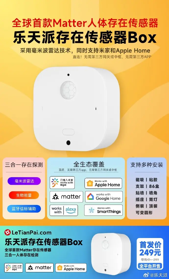- 樂天派人體存在傳感器 Box 上市,首發(fā)價 249 元