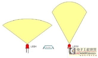所有的 LED 都有一個特定的視角,一個窄視角LED 意味著發(fā)出的能量更加集中,比寬視角LED 照射的更遠。這意味著使用窄視角IR LED 將在窄檢測區(qū)域中形成更遠的檢測范圍,如圖5所示。另外,Si1143的LED電流可以通過軟件設置在6.5mA到416mA之間的任意一個值,當在近距應用時適當?shù)膶ED發(fā)射功率調(diào)小可以節(jié)省電量消耗,同時,調(diào)大LED光功率則能夠更穩(wěn)定的探測更遠距的物體,這樣在應用和能源的利用上更為靈活和合理。