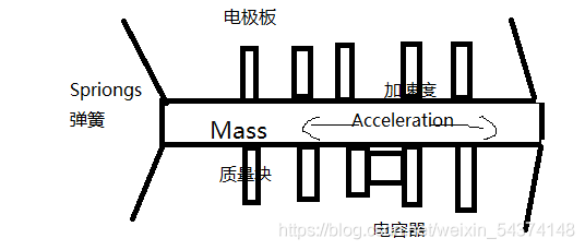 如圖中的模型, 一個質(zhì)量塊兩端通過彈簧進行固定。在沒有加速度的情況下,彈簧不會發(fā)生形變,質(zhì)量塊靜止。當產(chǎn)生加速度時,彈簧發(fā)生形變,質(zhì)量塊的位置會發(fā)生變化。 彈簧的形變量隨著加速度的增大而增大。在彈簧的勁度系統(tǒng) k 和質(zhì)量塊的質(zhì)量 m已知的情況下,只要測量出彈簧的形變量,就可以求出系統(tǒng)的加速度。