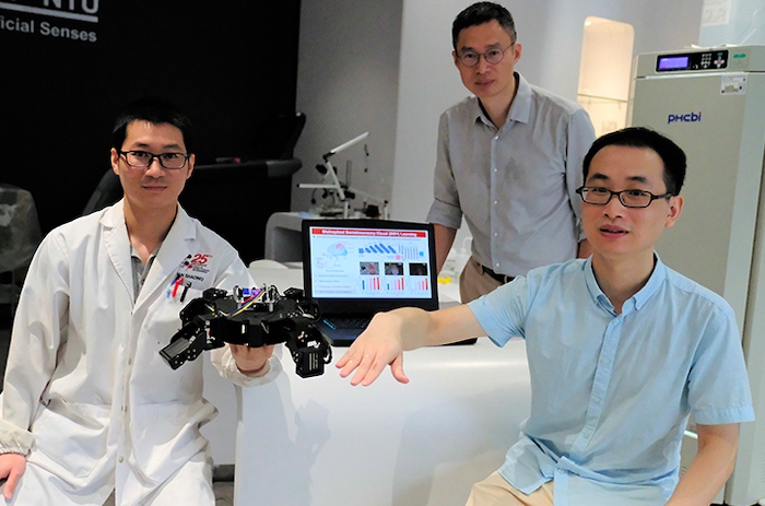 NTU新加坡的科學家將計算機視覺和類似皮膚的電子設(shè)備結(jié)合在一起,引導機器人穿過迷宮。圖片由NTU新加坡提供