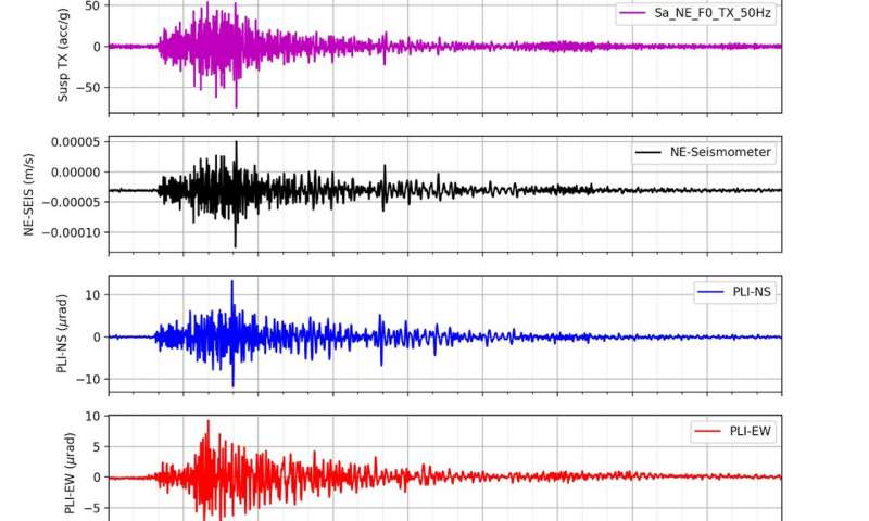 與傳統(tǒng)的地震儀不同,傳統(tǒng)的地震儀通過對懸在彈簧上的重物的影響來檢測地震動,而精密激光傾角儀(PLI)則可以測量其對液體表面的影響。通過將激光指向液體并觀察其反射方式來進行測量。與重力彈簧地震儀相比,PLI除了平移運動(上下和左右)外,還可以檢測角運動,并且可以非常高精度地拾取低頻運動。
