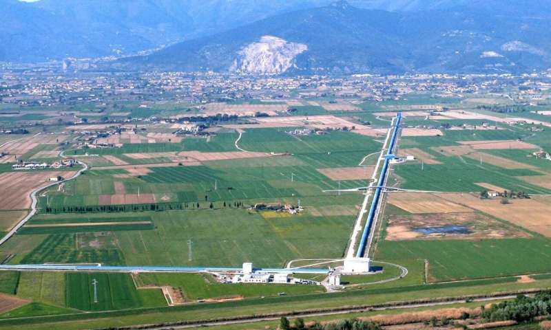 Advanced Virgo探測器的鳥瞰圖,已安裝并正在測試CERN使用的精密激光干涉儀。信用:處女座合作