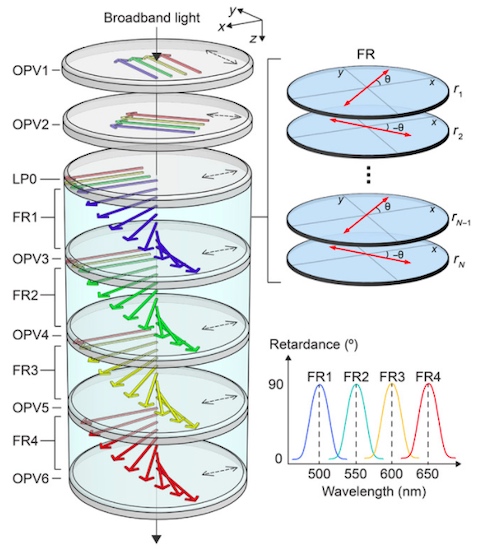 P-OPV對(duì)光的響應(yīng)根據(jù)光的偏振而變化,而延遲器則根據(jù)其偏振態(tài)以確定性的方式分散光。利用這種架構(gòu),該傳感器可以檢測(cè)設(shè)備中足夠小以適合智能手機(jī)的兩種類(lèi)型的光。