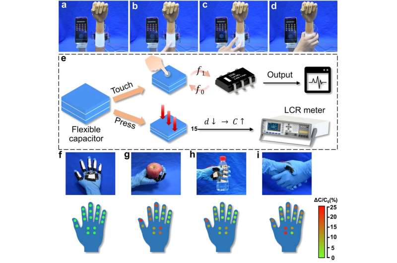 用于接觸和壓力傳感的柔性電容器。圖片來(lái)源:王萌等。