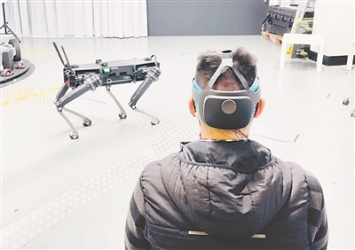 研究小組將8個(gè)這樣的傳感器整合到一個(gè)彈性頭帶中,并固定在枕骨區(qū)域。當(dāng)與顯示視覺(jué)提示的增強(qiáng)現(xiàn)實(shí)耳機(jī)相結(jié)合時(shí),電極可檢測(cè)到正在觀看的提示,然后與計(jì)算機(jī)合作,將信號(hào)解析為控制四條腿機(jī)器人運(yùn)動(dòng)的命令,該過(guò)程完全解放雙手。